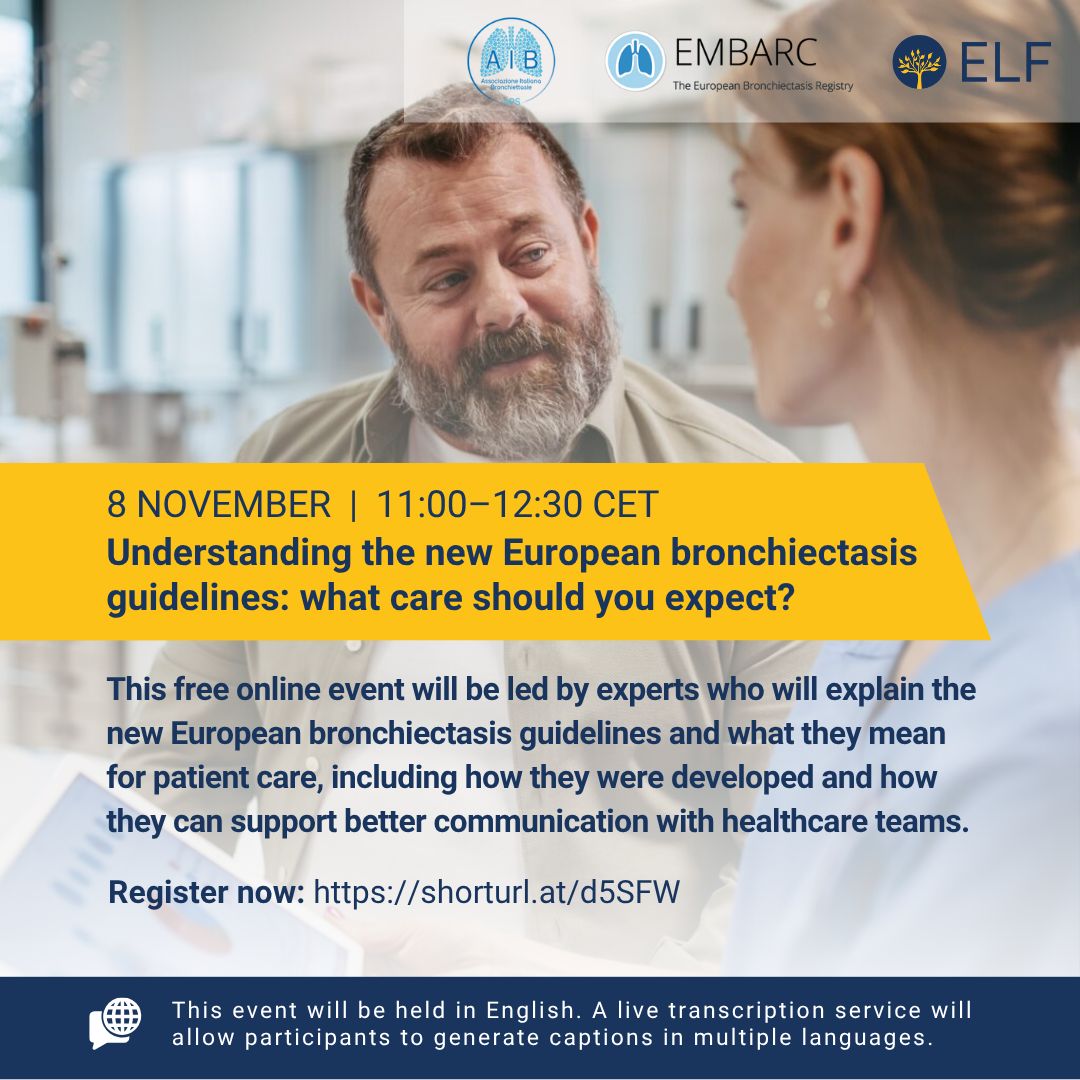 Understanding the new European bronchiectasis guidelines: what care should you expect? 2025-11-02T17:12:46+00:00 Condividi questa storia FacebookLinkedInWhatsAppEmail